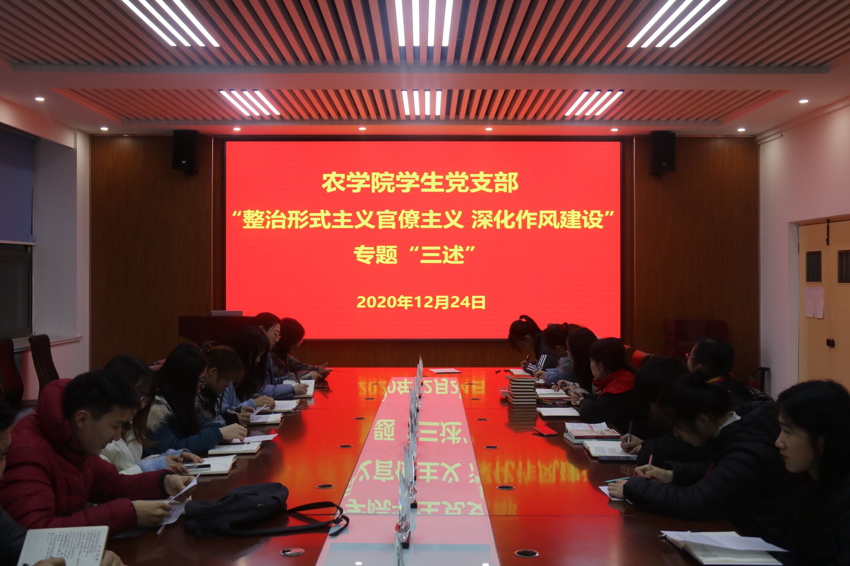 12月24日,beat365学生党支部于生物楼开展“整治形式主义官僚主义,深化作风建设”专题“三述”活动,beat365党总支副书记、第三党支部书记马伟萍,第三党支部副书记刘宁和全体学生党员参加。