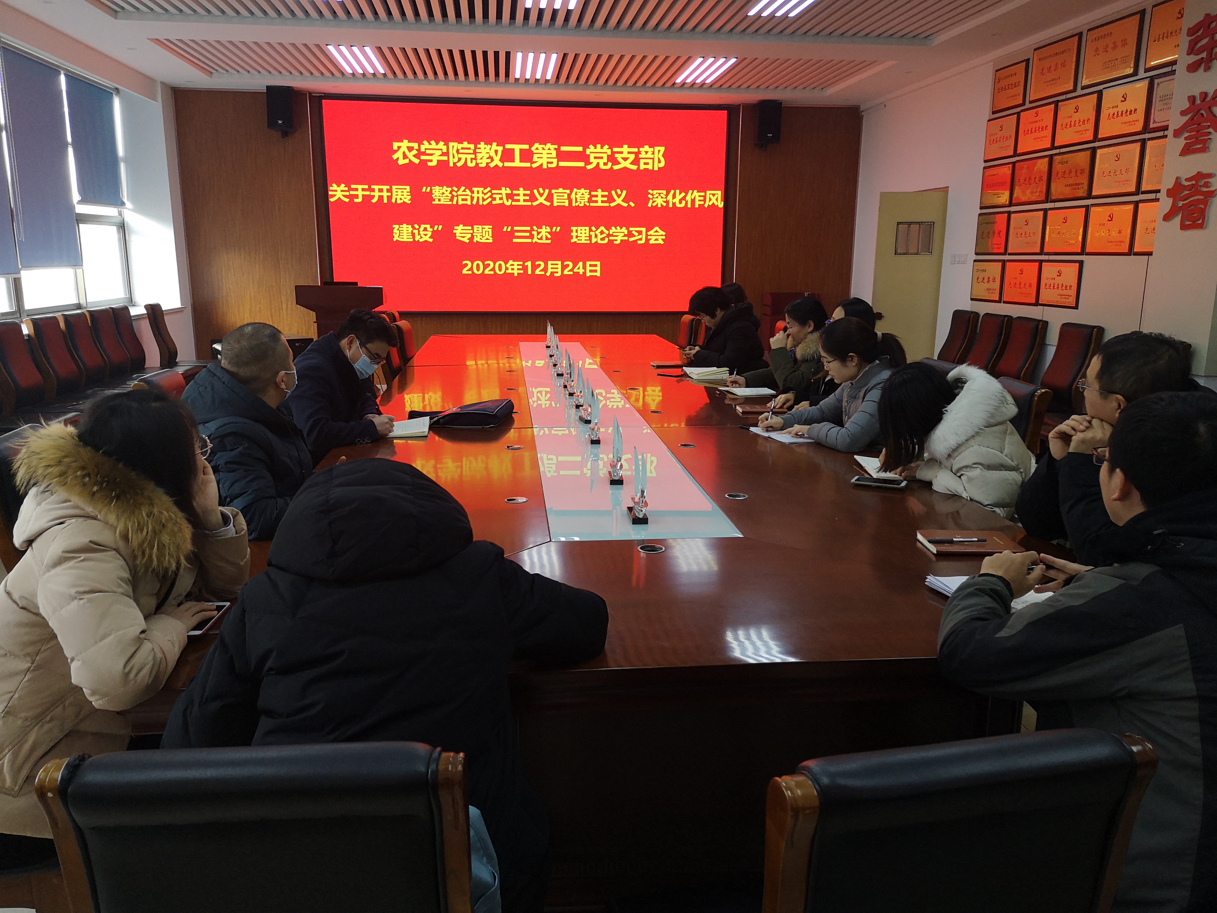 为进一步转变广大党员干部作风,确保全年工作落实落地,扎实谋划好支部明年工作,12月24日,beat365第二党支部于生物楼召开“整治形式主义官僚主义,深化作风建设”专题“三述”会议,beat365第二党支部全体党员参加。会议由第二党支部组织委员郭新梅主持。