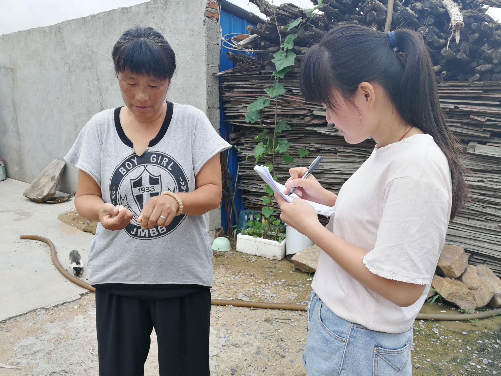 7月12日,队员们按照计划进行入户调研,首先,通过村支书的介绍,对村庄的各方面情况进行大体了解,并在村民的带领下参观了兴利冷库,进一步了解村内的设施建设。通过跟村民的沟通交流,大家基本了解到当地村民的耕种和经济情况,由于主要经济来源为种植果树收入,而可耕地面积较少,这一问题导致村民经济收入较少,不过,村民的幸福指数却很高,在这个小小的村子,有着大大的幸福度,其中的原因值得我们进一步探索......