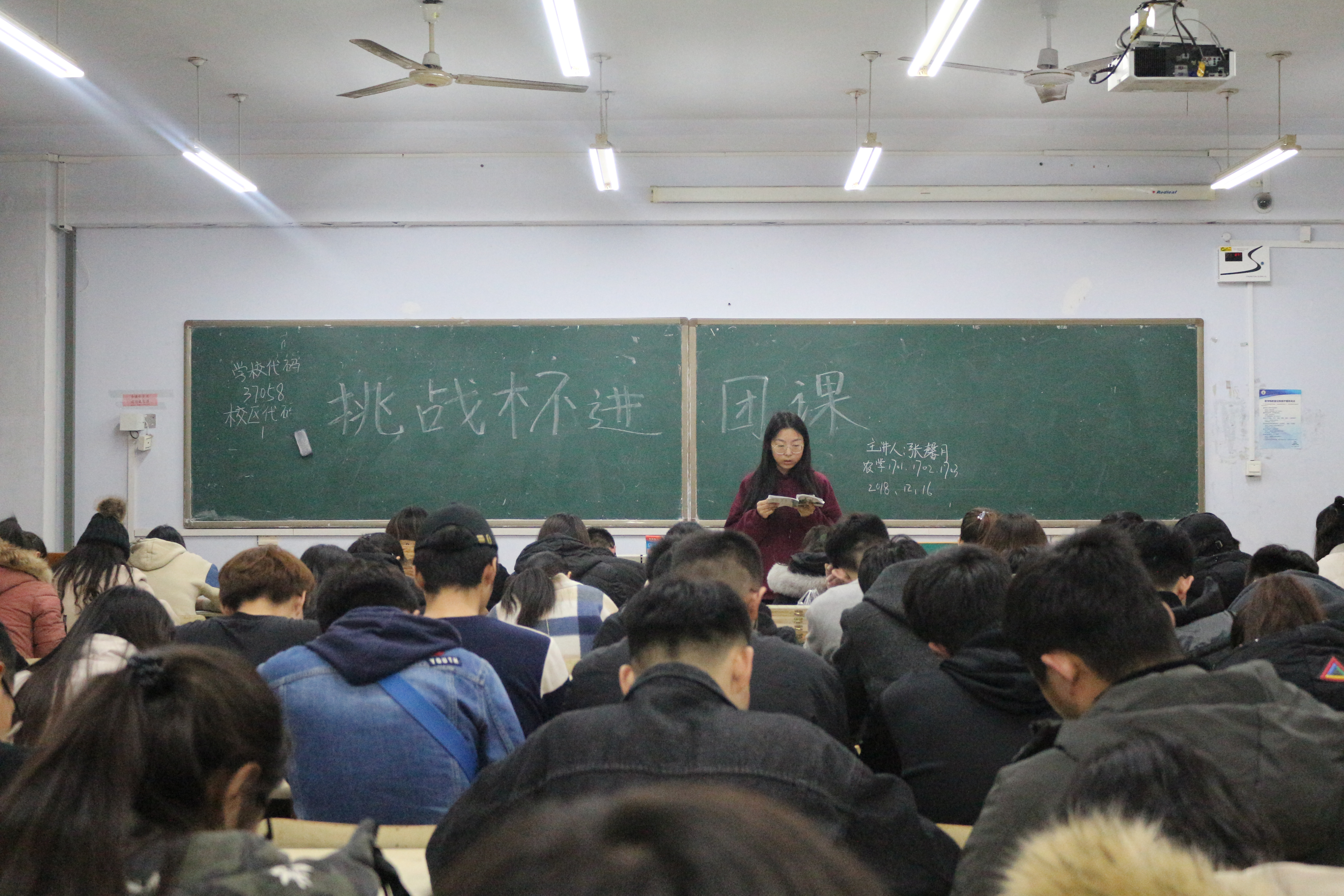 12月16日,beat365于教学区A区开展“挑战杯进团课”主题团课,旨在增强学生对挑战杯的了解,促进青年创新人才成长。学院2017、2018级全体同学积极参加。