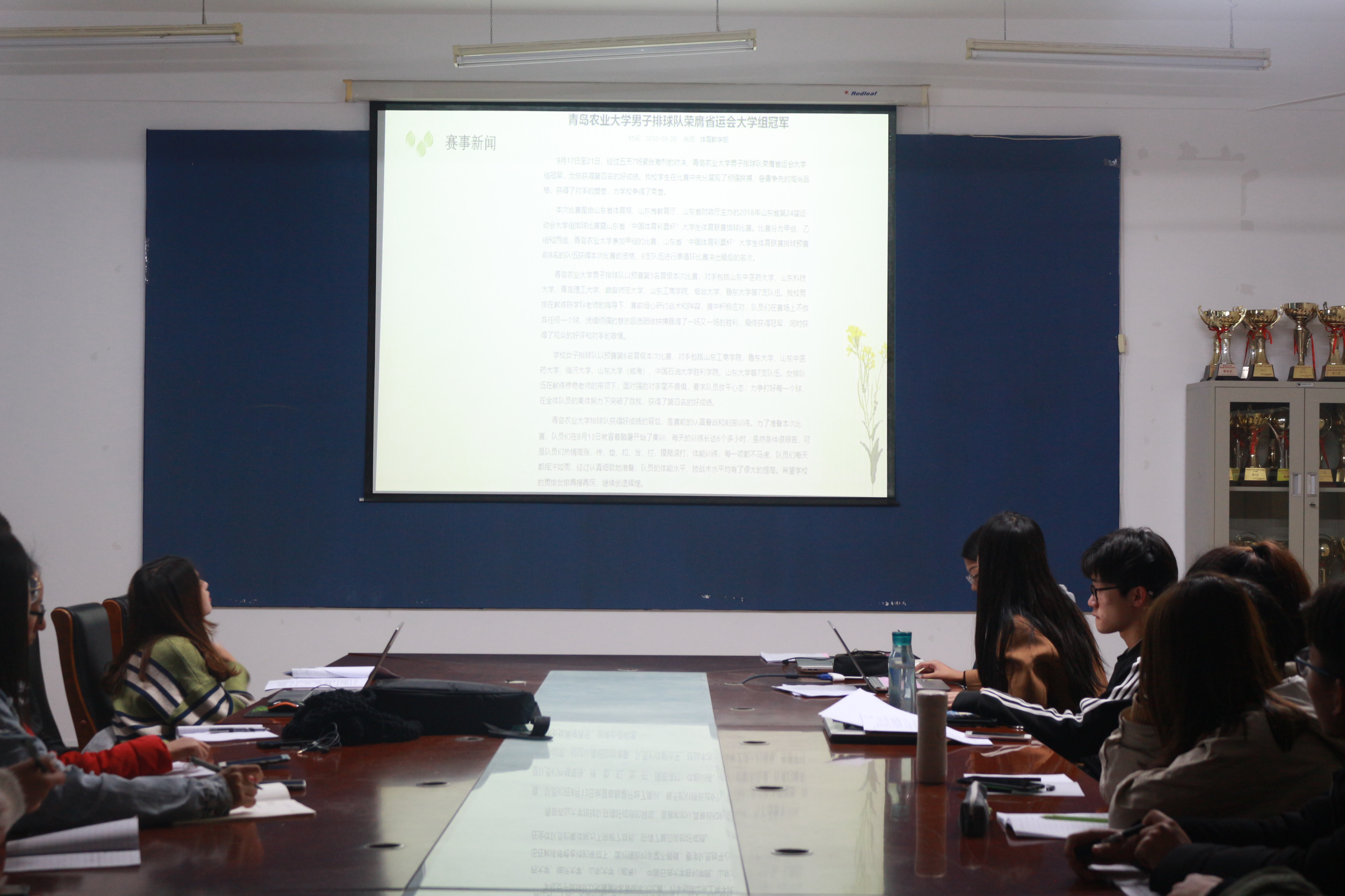 11月9日,农beat365体育官方网站中心于生物楼N区开展新闻摄影培训会,旨在进一步加强大一实习干事对部门工作的了解,提高部门成员的新闻素养。新闻中心主任王冠颖主持会议,部门干事、实习干事参加。
