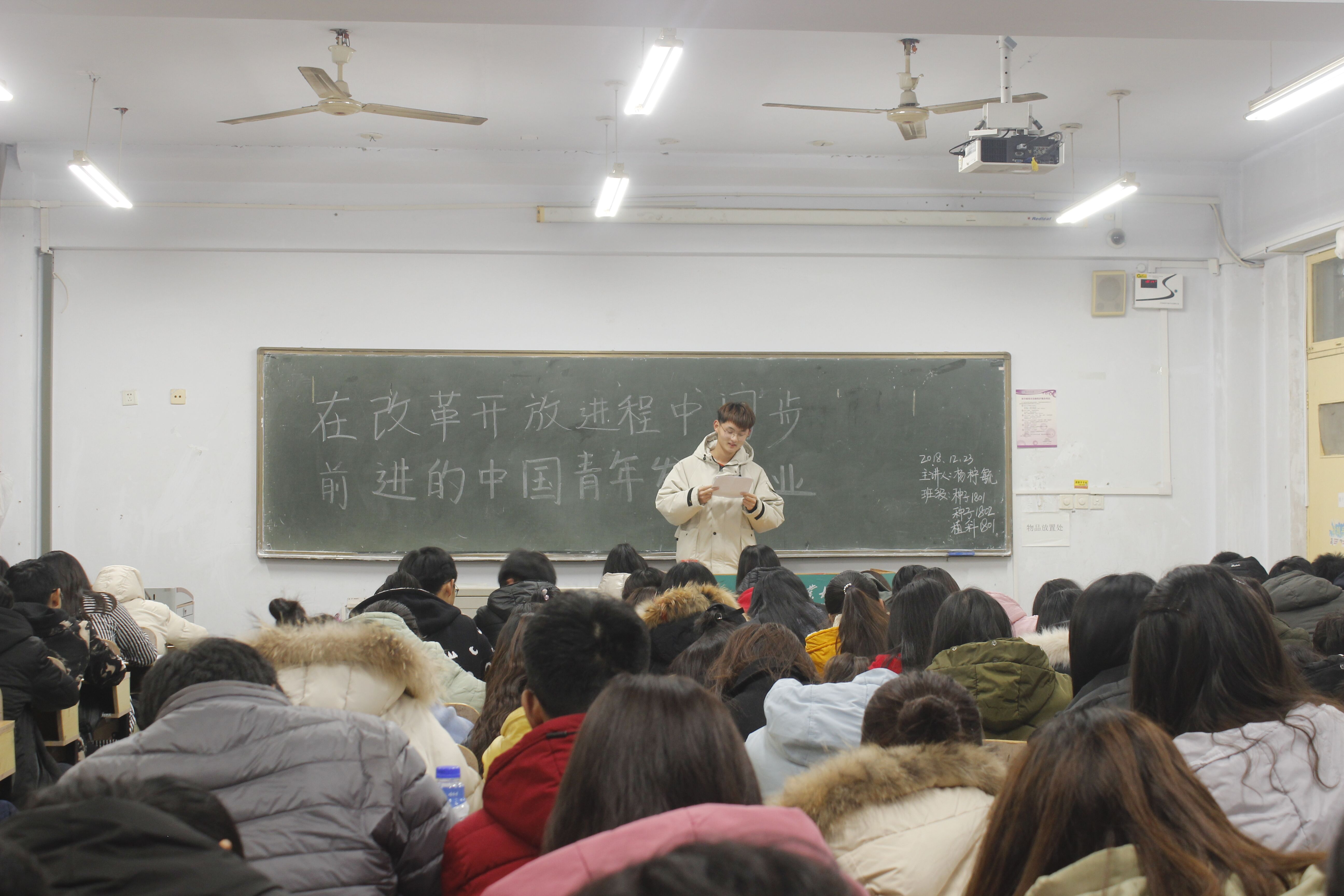 12月23日,beat365于教学区A区开展“在改革开放进程中阔步前进的中国青年发展事业”主题团课,旨在让学生们认识到改革开放的重要性,提高学生们投身改革开放的热情。学院2017、2018级全体同学积极参与。