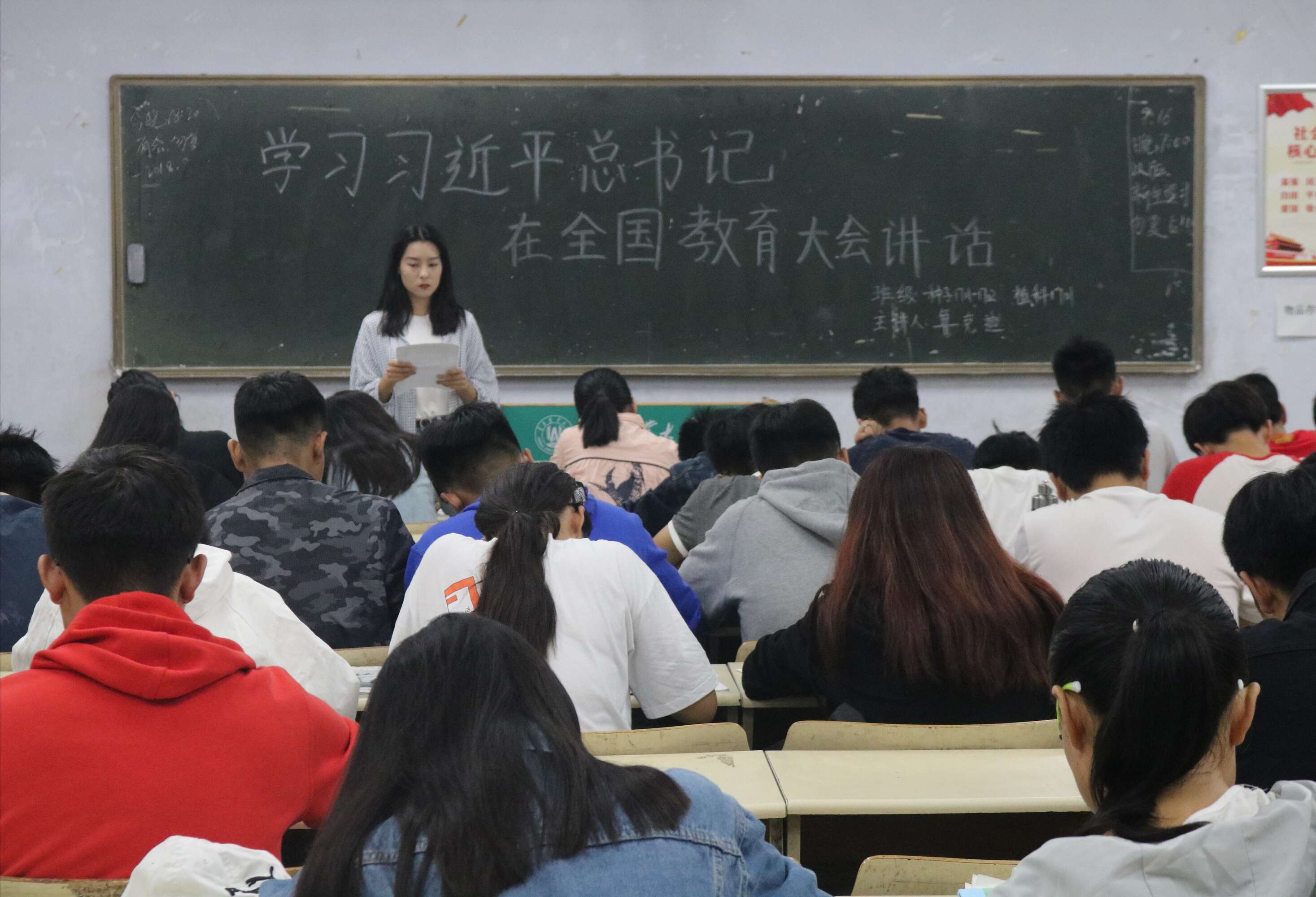 为充分学习习近平总书记的重要讲话精神,把握教育事业面临的新形势、新任务,9月16日,beat365在教学区开展“学习习近平总书记在全国教育大会讲话”主题团课。2017级和2018级全体同学积极参加。