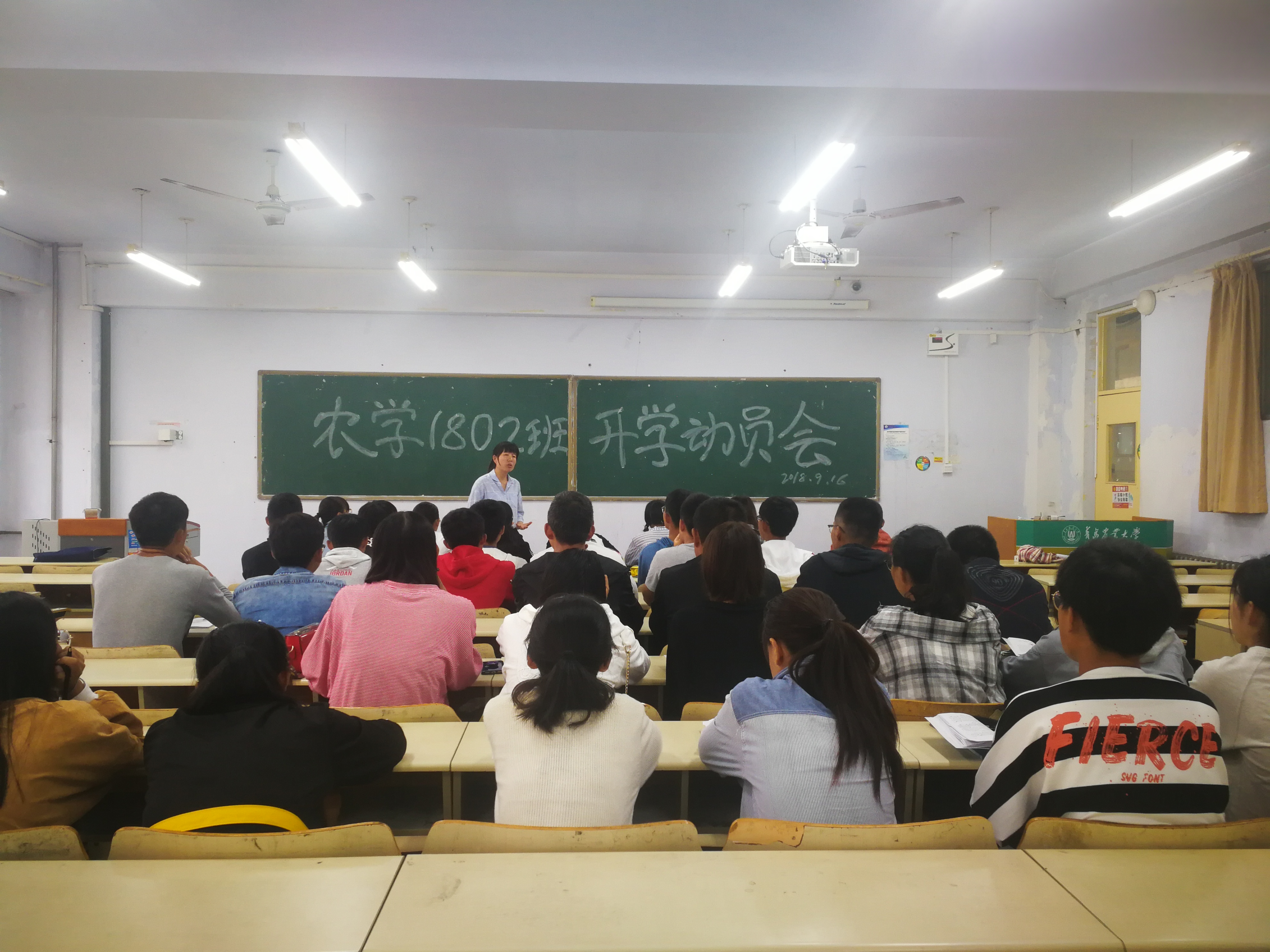 9月16日,农学1802班召开大一第一学期开学动员大会,会议由班主任郭卫卫主持,目的在于使同学们尽快从军训生活中调整过来,开始大学学习生活。