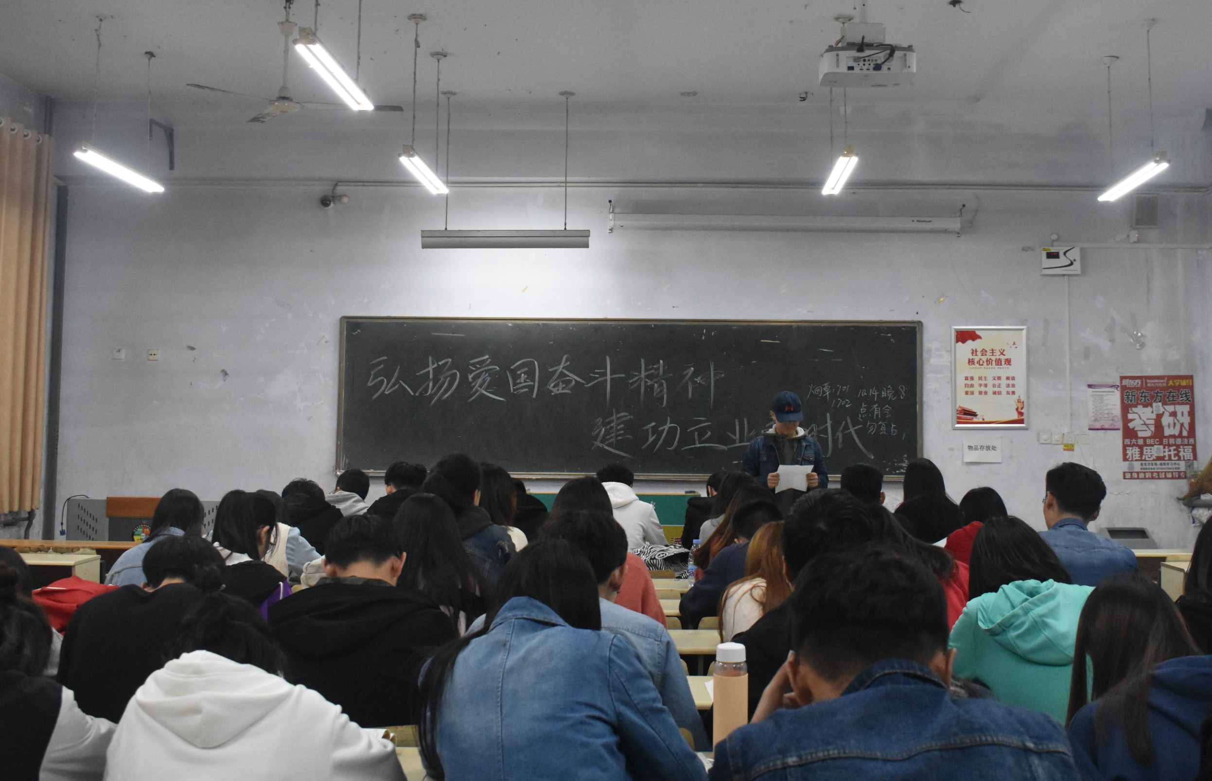 为深入贯彻落实习近平总书记对广大青年提出的希望与要求,增强同学们的爱国情怀,争做新时代新青年,10月14日,beat365于教学区开展"弘扬爱国奋斗精神,建功立业新时代"主题团课教育,2017、2018级全体同学积极参加。