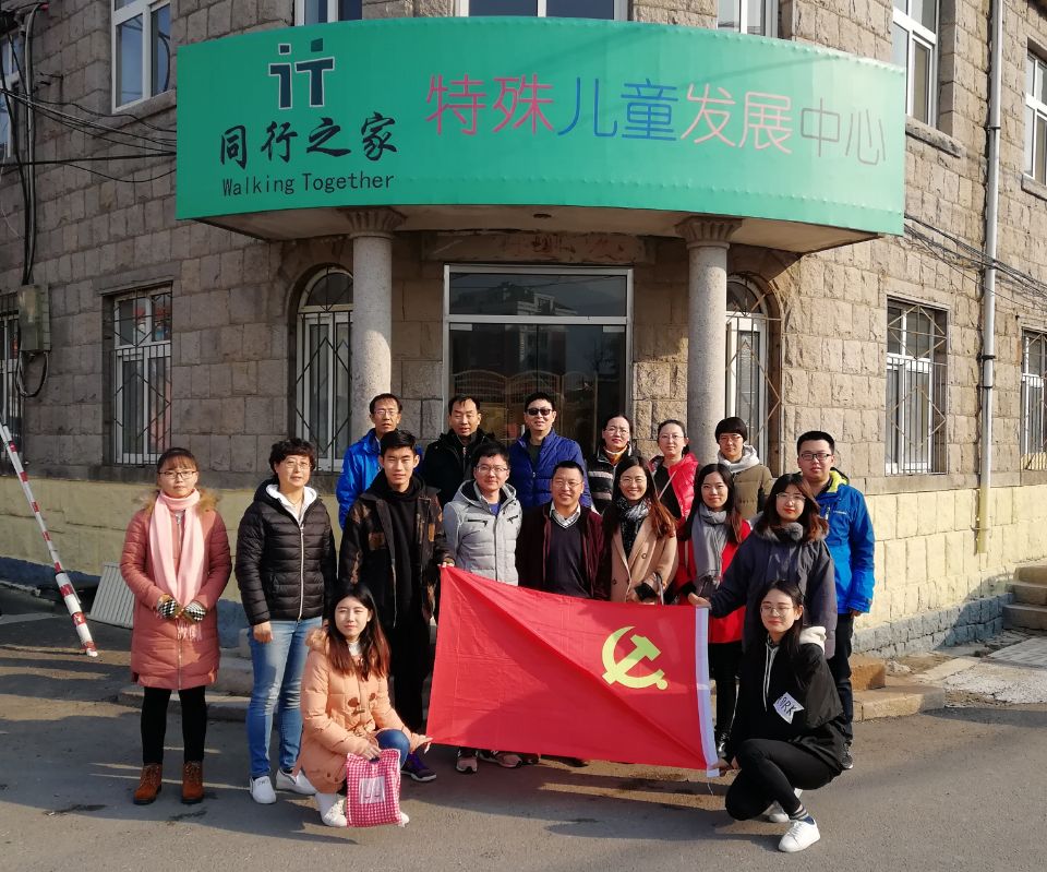 “同行之家”特殊儿童发展中心位于青岛市崂山区王哥庄社区,由旅美博士许真谋、崔伊娜夫妇自费创建,中心免费为这些特殊儿童提供托养照料服务和一定的康复教育,目前共有特殊儿童30余名。教职工及学生代表二十余人前往“同行之家”开展爱心志愿者服务活动,为孩子们带去了教职工捐助的现金和小食品,陪他们绘画涂色,为他们表演吉他弹唱,并进行了互动游戏。中午,志愿者还与中心的义工一起为孩子们包了一顿爱意浓浓的水饺,陪他们度过了开心愉悦的一天。