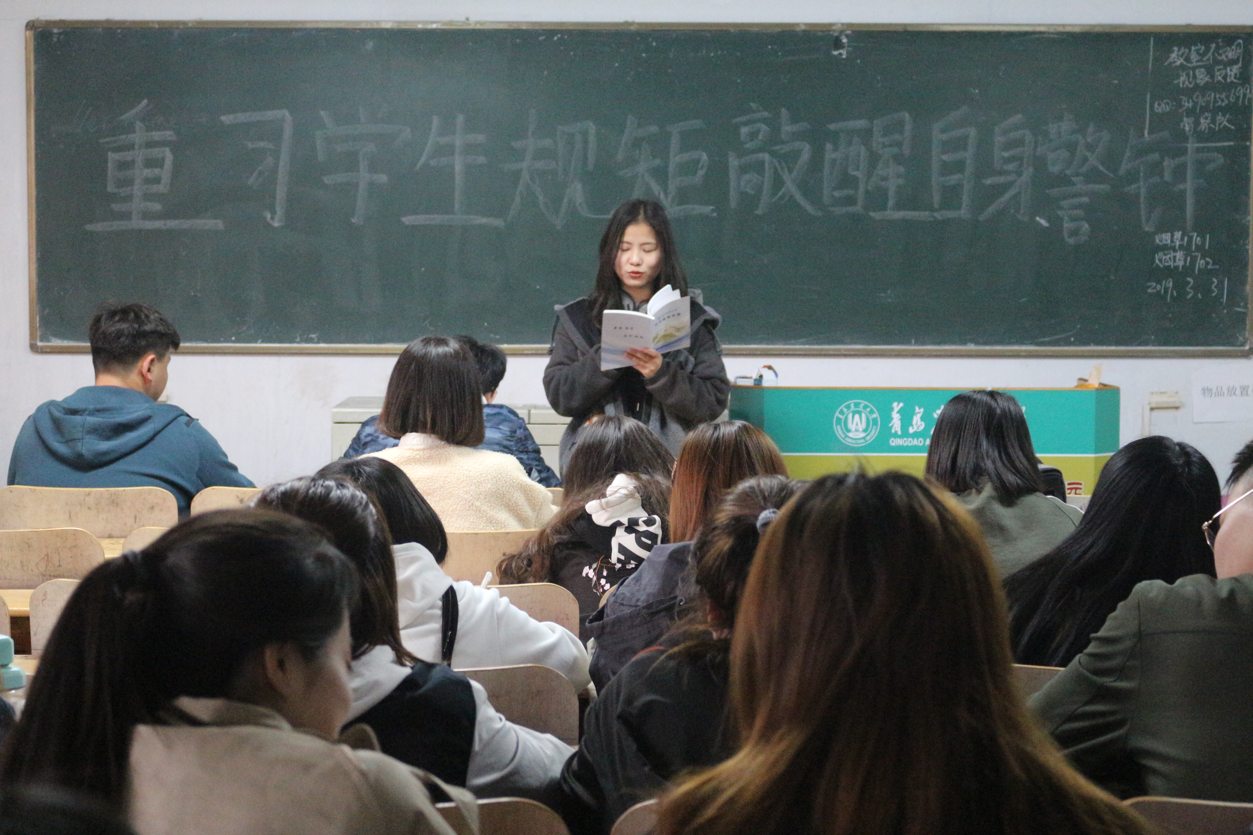3月31日,beat365于教学区开展“重习学生手册,敲醒自身警钟”主题团课,旨在规范学生日常行为,进一步加强院纪和院风建设,增强我院学生学习的积极性和自主性。2017、2018级全体团员积极参加。