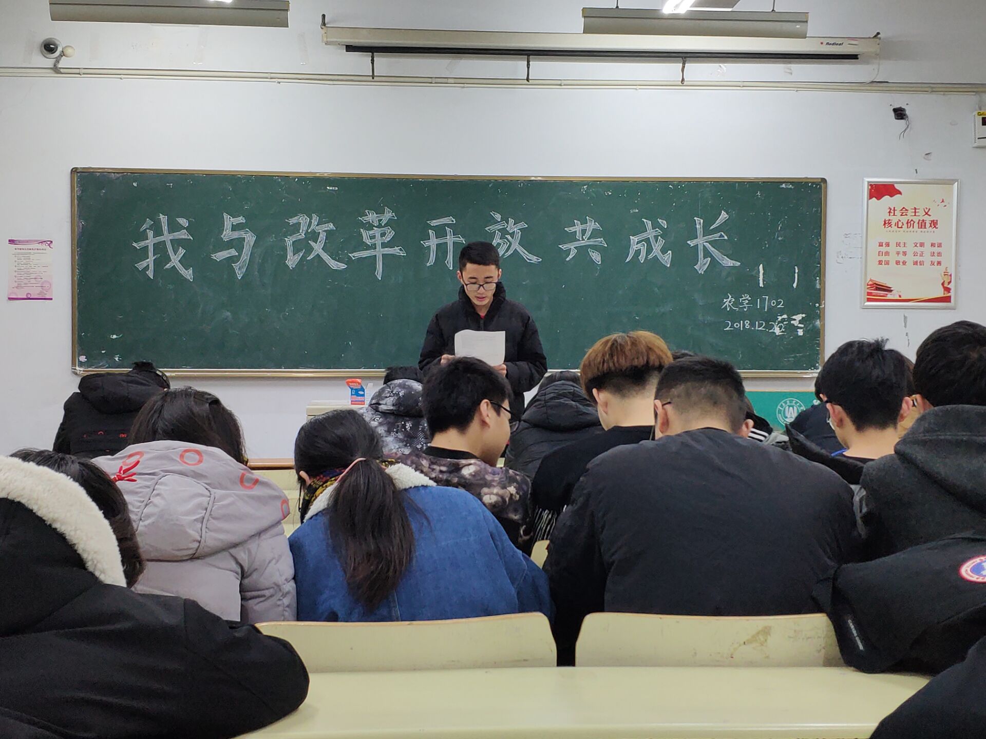 12月20日,为了改革开放四十年beat3651702班在教学区c区举办“我与改革开放共成长”主题班会。张晓军老师主持会议,农学1702班全体成员参加会议。