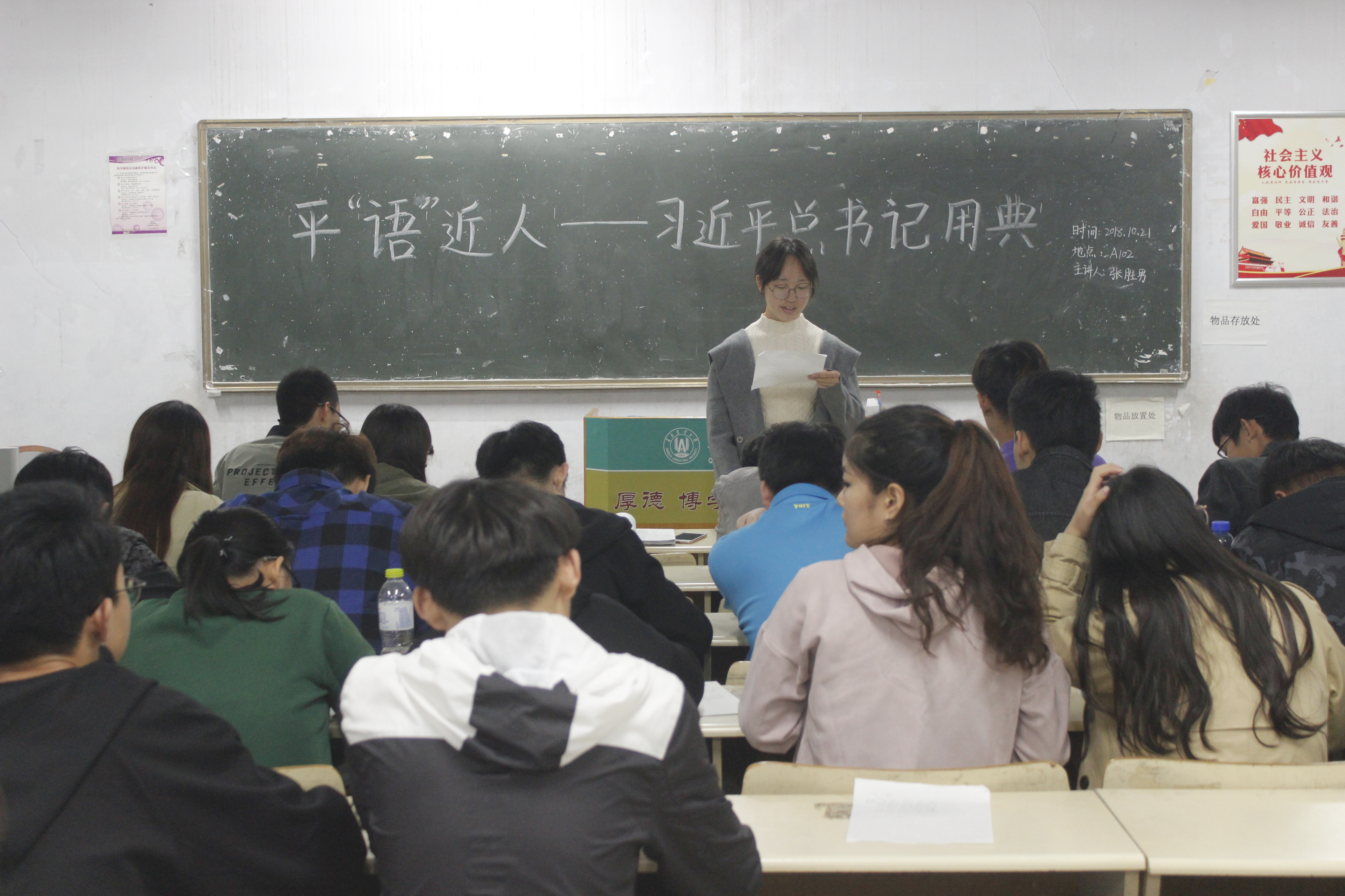 为积极响应团中央号召,切实开展《平“语”近人——习近平总书记用典》教育实践,10月21日,beat365于教学区开展“学习《平‘语’近人——习近平总书记用典》解说词”为主题的团课教育。beat3652017级、2018级学生积极参加。