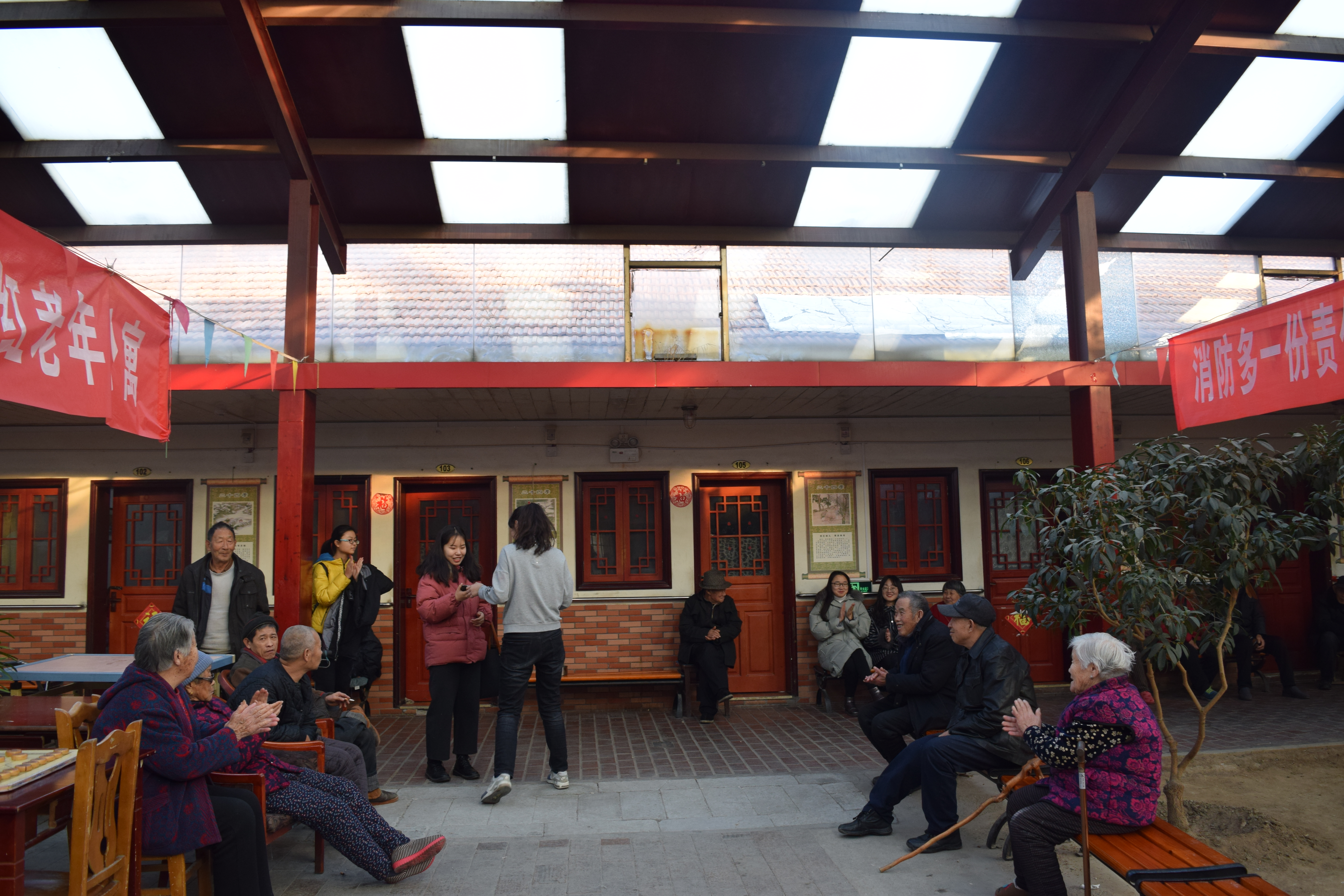 志愿者从青岛农业大学出发,带着满腔热情,向夕阳红乐园敬老院出发。到达目的地后,志愿者依次向老人问好后,大家走到老人们的居住区,询问他们的身体状况。与此同时,志愿者们寻找到照片上的老人,并亲手将照片送给他们。同学们为老人带去精心准备的节目,他们一边表演节目,一边陪老人聊天,听他们讲述过去的故事,老人们面对着充满活力的志愿者们,脸上洋溢着幸福。
