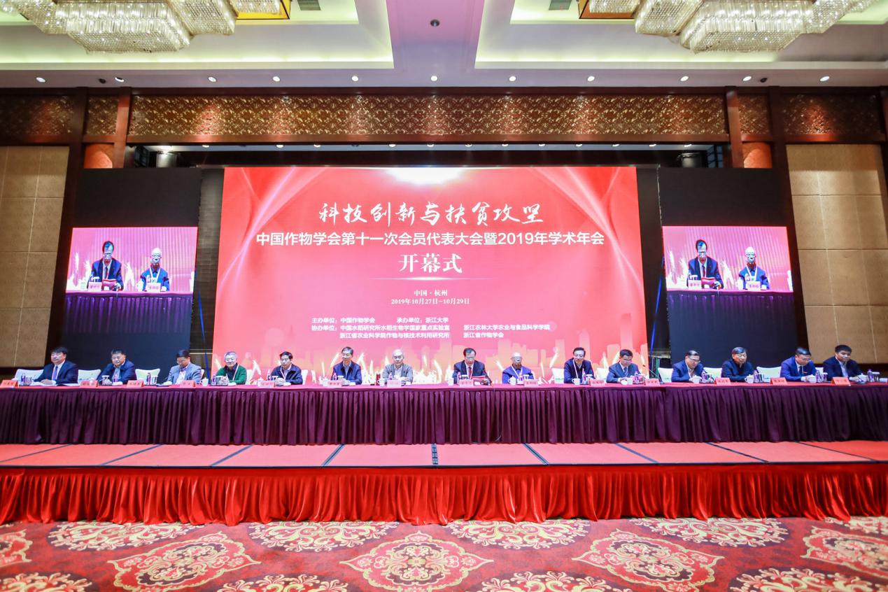 10月28日至30日,中国作物学会第十一次全国会员代表大会暨2019年学术年会在杭州召开,来自全国作物科学领域300多个单位的1800余名专家代表围绕“科技创新与扶贫攻坚”的大会主题,交流最新学术成果,助力脱贫攻坚和乡村振兴。本次会议由中国作物学会主办、浙江大学承办,共为期三天,包含院士公开课、大会学术报告、分论坛报告、研究生论坛、墙报评比等多种形式的学术交流活动。中国农业大学校长孙其信,国土资源部原副部长曹卫星,两院院士盖钧镒、刘旭、喻树迅、陈剑平、韩斌、张洪程,美国科学院院士朱健康等出席,校长宋希云、beat365院长刘庆昌等师生代表10余人参加。