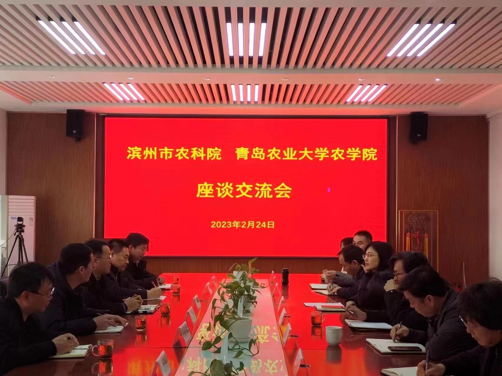 2月24日,滨州市农科院党支部书记刘树泽、副院长王子强、滨州市农业农村局科长任增凯等一行到访beat365,双方在beat365会议室进行了座谈交流,我院党委书记马伟萍、副院长刘义国、赵长星、张恩盈、教师代表刘家斌、姜雯、郭卫卫参与本次座谈交流会。会议由副院长刘义国主持。