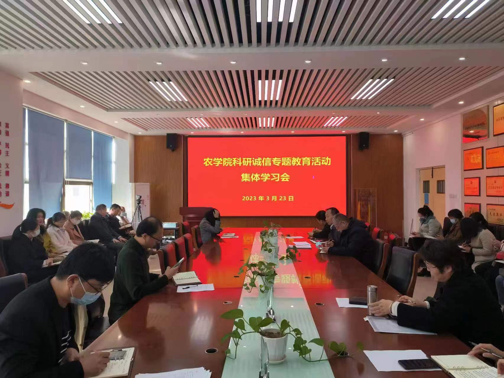 根据青岛农业大学开展科研诚信专项整治活动的通知安排,赵长星传达了《山东省教育厅关于进一步加强高等学校科研诚信工作的意见》(鲁教科发〔2022〕3号)文件精神,带领学院教师重点学习了《青岛农业大学科研诚信规范与学术不端行为处理办法》,指出学院教师应强化科研诚信意识,明确学术规范标准,在科研工作中要严格遵守学术规范,弘扬学术道德和科研伦理,坚守底线,警钟长鸣。