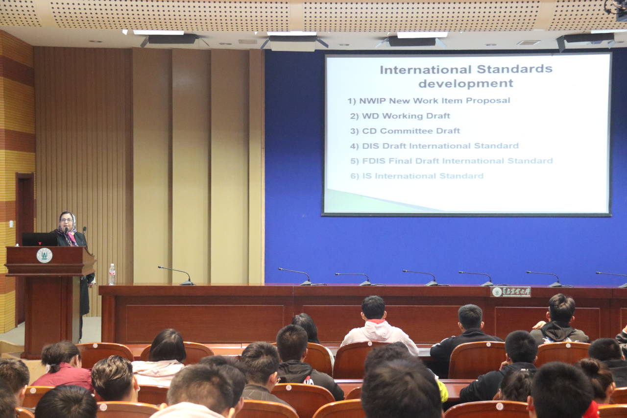 讲座中,Tabari介绍了国际标准化组织(ISO)基本情况和如何推进学生标准化社团建设。Tabari教授表示,ISO是国际标准化领域中一个十分重要的组织,希望同学们通过此次报告对标准化工作有更深入的了解和认识,未来积极参与到国际标准化工作中去。讲座结束后,Tabari针对同学们存在的疑惑一一作了精彩的解答,帮助同学们更好的了解标准化社团。