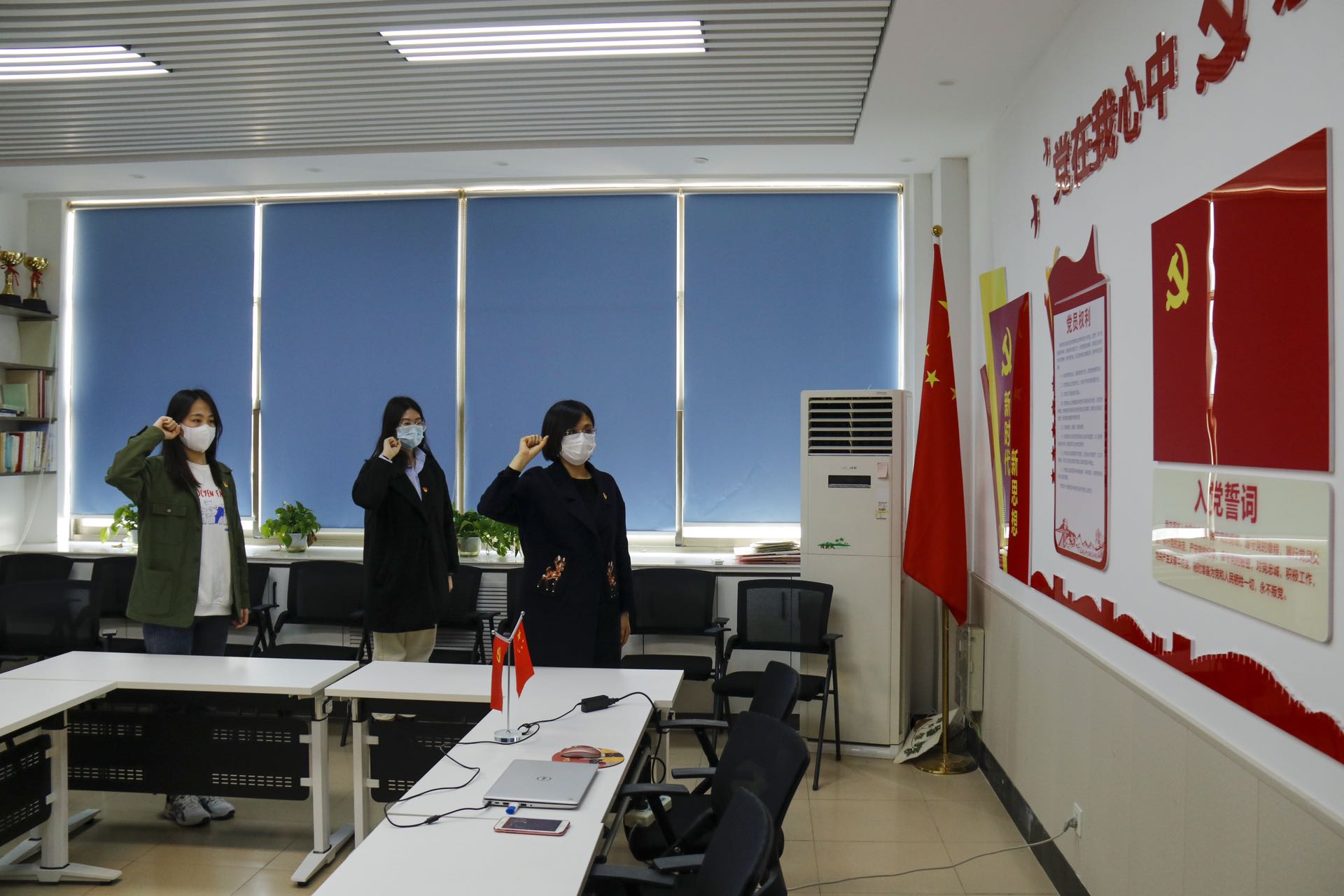 马伟萍以“我是党员我带头 疫情防控当先锋”为主题,与大家一起观看了学校战“疫”视频《微光》,重温了中共青岛农业大学委员会组织部致各级党组织和广大共产党员的动员令,并结合当前严峻的疫情防控形势和亲身经历体会,讲述了留守校园的广大党员干部、师生员工参与疫情防控工作涌现出的感人故事和鲜活事例。最后,全体党员举起右拳,重温入党誓词。