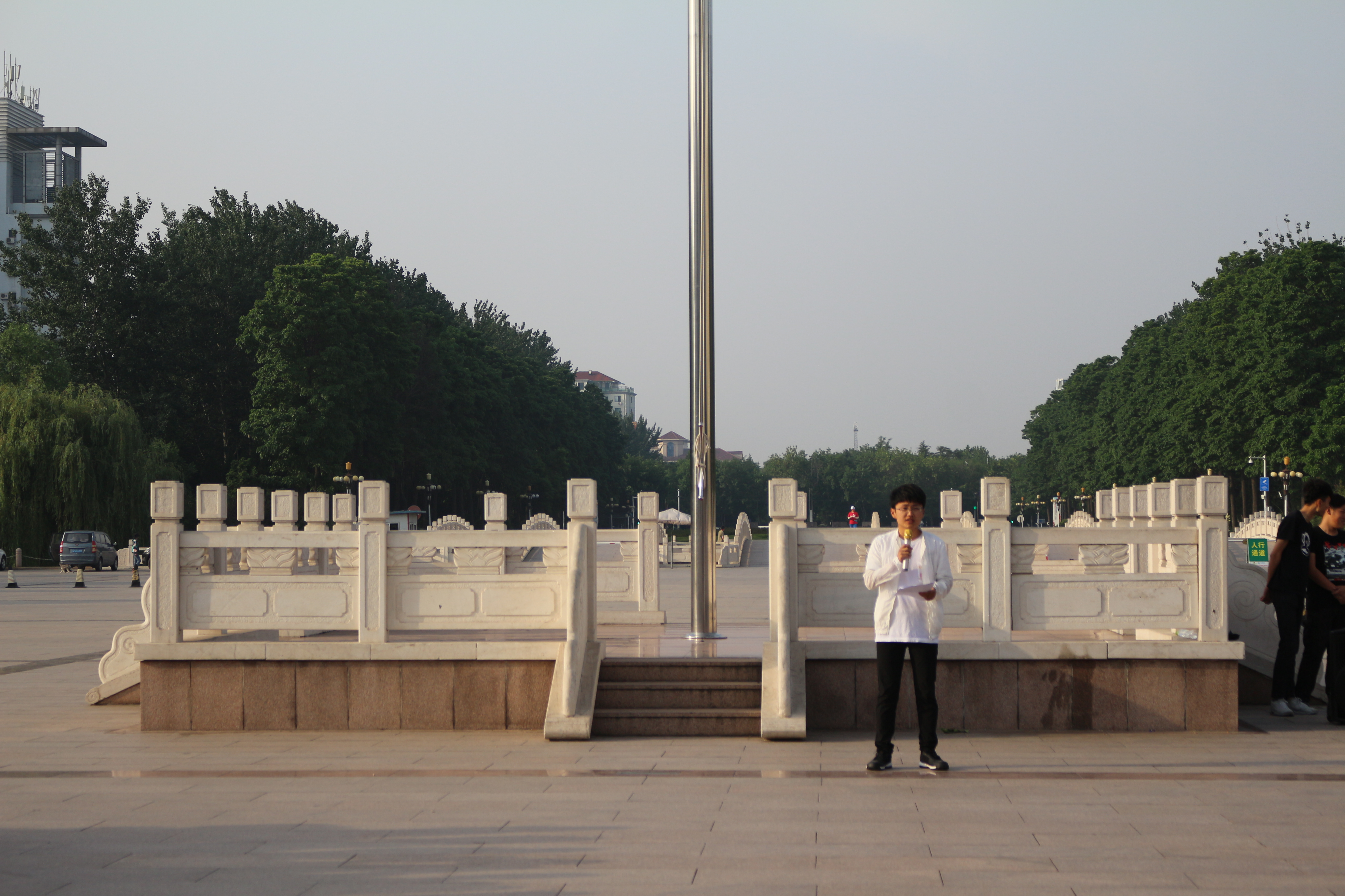 升旗仪式开始,升国旗,奏国歌。国旗护卫队迈着庄严而整齐的步伐走到旗台下,全体师生怀着崇敬与喜悦的心情,凝视着迎风飘扬的五星红旗。随后,毕业生代表王太行发言,他总结了三年来所学知识,深切表达了对学院领导、老师的感激之情和对同学、朋友的不舍之情,以及对未来发展的积极向往和即将踏入社会的坚定信心,并鼓励全体同学要有奋发拼搏,努力进取的斗志,勇敢担负起时代赋予的使命。