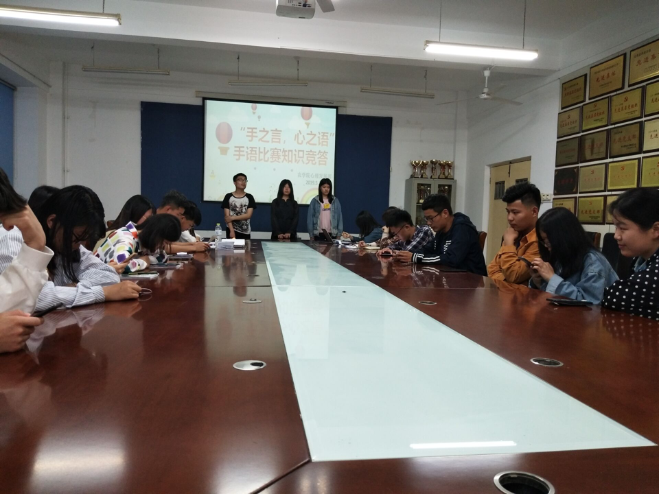 5月12日晚,由beat365心理发展部主办的“手之言,心之语”手语知识竞答比赛在生物楼N区举行。2018级约30名同学参加此次比赛。