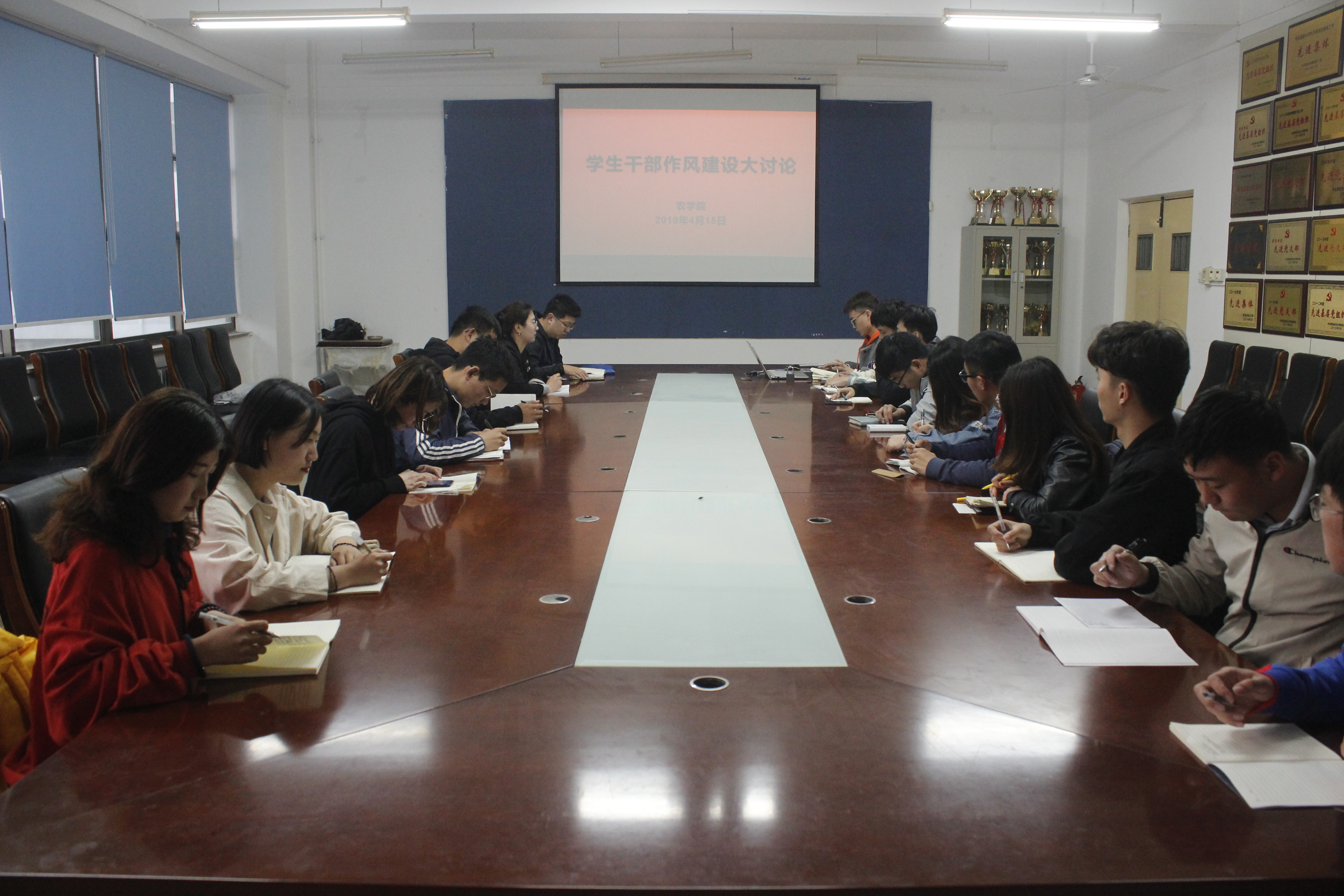 4月15日,beat365于生物楼N区组织开展学生干部优良作风建设大讨论,beat365团委书记姜涛、辅导员谷元兴、刘宁和2018届学生会成员参会。