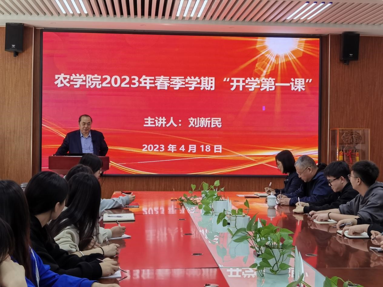 4月18日,青岛农业大学党委副书记、校长刘新民在生物楼N206为beat365公费农科生讲授以“让青春在新时代绽放绚丽之花”为主题的春季学期开学第一课,学院党委书记马伟萍主持。
