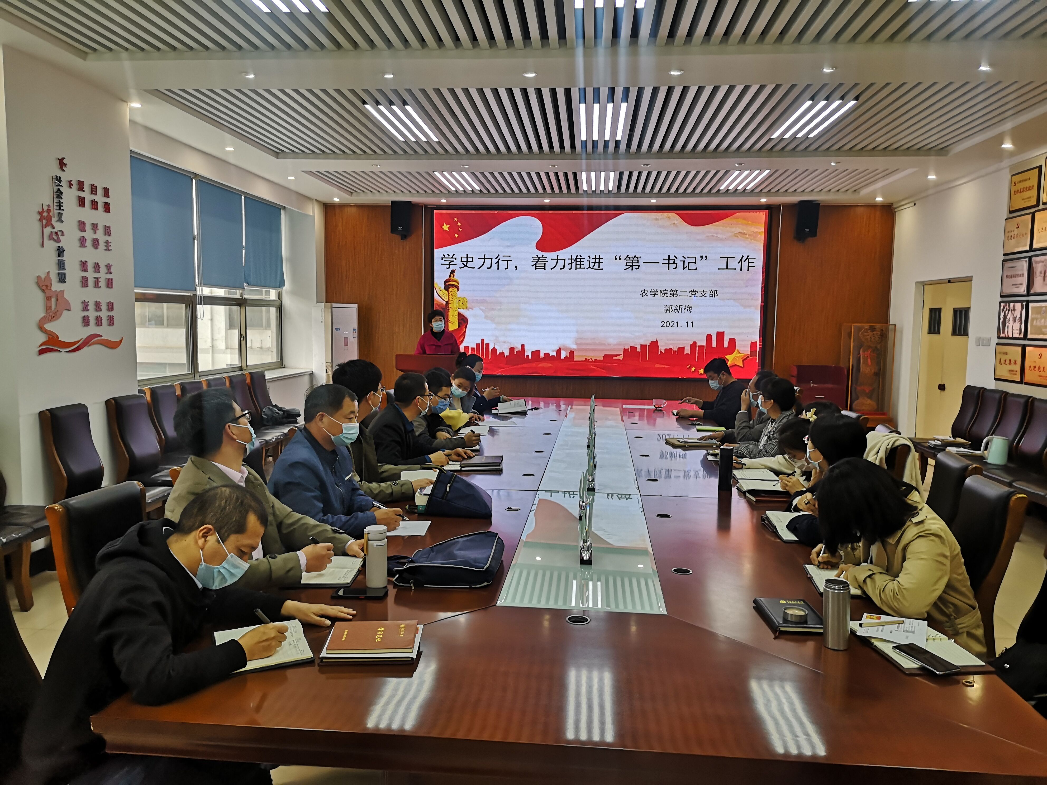 11月5日,beat365第二党支部于生物楼开展“我来讲党课”主题党日活动,由该支部组织委员郭新梅讲授“学史力行,着力推进‘第一书记’”主题党课,第二党支部全体党员参加。