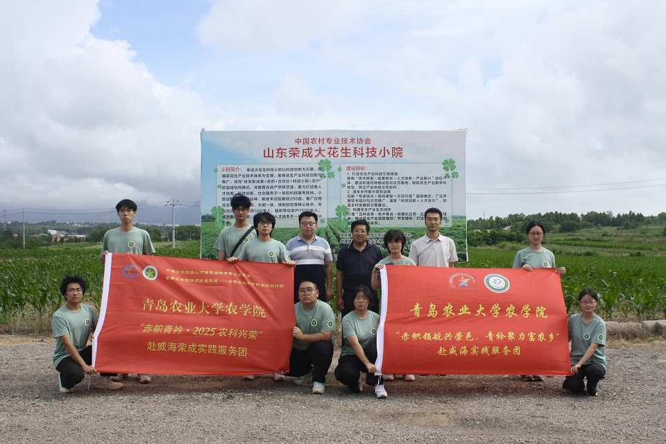 在虎山镇,司彤在荣成大花生科技小院开展田间课堂,指出“中国人的饭碗不仅要牢牢端在自己手里,而且我们中国人的油瓶子里要多装中国油”,随后从花生的生长特性、田间管理、栽培要点和病虫害防治四个方面进行讲解,重点介绍花生种植需要与玉米等作物进行轮作换茬,避免连作障碍,减轻病虫草害。“中国好人”、虎山镇农业合作社理事长连建祝向实践团成员介绍科技小院的基本情况,带领大家前往种植基地了解夏玉米等作物种植状况,指出夏玉米不同生育阶段的叶片数量可作为田间管理的重要指标,通过深入研究各叶龄期植株的生理特性和需肥需水规律,制定差异化的肥水调控、病虫害防治等措施,实现玉米产量与品质的协同提升。虎山农业种植专业合作社工作人员王建情,带领实践服务团观看宣传片并参观裕农学堂。实践团成员了解到虎山合作社每季度会开展生产技能培训班,通过系统化教学帮助农户掌握现代农业技术,提升生产管理水平。最后,实践服务团成员开展助农直播,以实际行动助力乡村振兴。