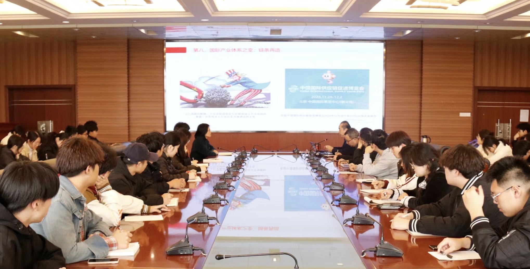 刘新民以国家战略发展及大学生使命担当为切入点,从“纷繁复杂的国际局势”、“信心足、底气硬的中国发展”、“高质量发展的青岛农业大学”、“做有理想、敢担当、能吃苦、肯奋斗的新时代好青年”四个方面展开讲授。刘新民阐述了在百年未有之大变局的背景下,围绕国际国内和学校发展大势,回顾“守正创新的2023年”,展望“继往开来的2024年”。刘新民讲述学校近期的发展成果,点明学校在高质量党建工作建设、人才体系培养、校友交流平台搭建等方面所做出的努力,提出学校今年发展的主要预期目标,指出学校将重点在学科组织优化、高水平教学团队培养、对外交流融合等方面争取获得突破性进展。