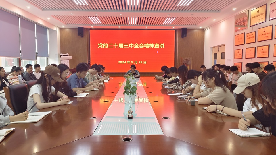 9月29日,我院党委书记马伟萍在生物楼N206面向主要学生干部讲授2024年秋季学期开学第一课,并作党的二十届三中全会精神专题宣讲,主要学生干部参加。