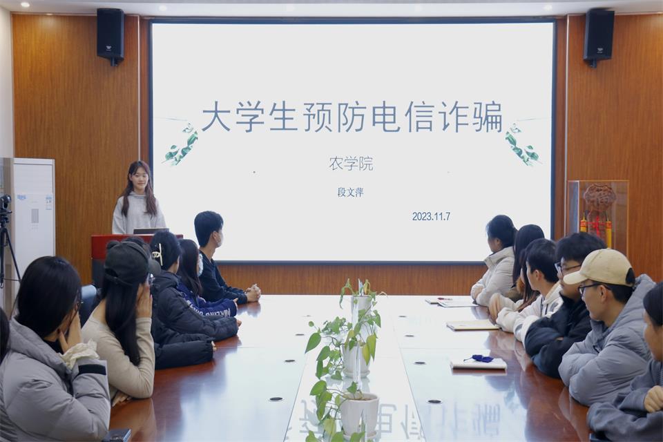 为提高学生的防范意识,增强学生的自我保护能力,11月7日,beat365于生物楼开展大学生预防电信诈骗宣讲会。本次宣讲会由beat365权益部兼1资助管理部部长段文萍主讲,学院学生会成员参加。