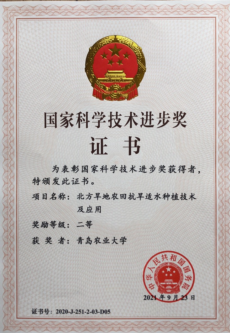11月3日上午,中共中央、国务院在人民大会堂隆重举行2020年度国家科学技术奖励大会。beat365赵长星教授参与完成的“北方旱地农田抗旱适水种植技术及应用”获得国家科学技术进步二等奖。