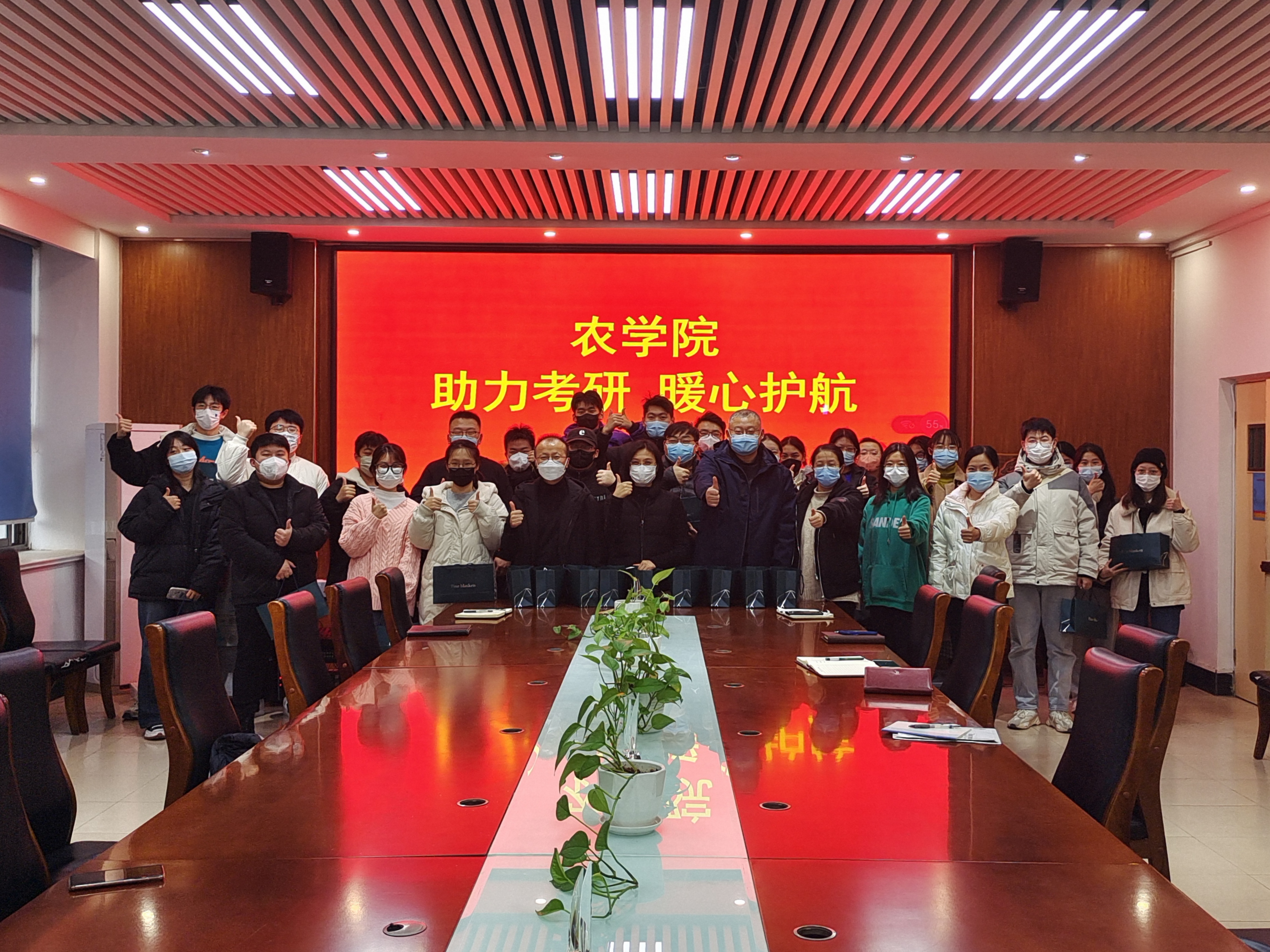 最后,马伟萍、孙占伟、2019级班主任、辅导员为各班学生代表送上学院精心准备的毛毯礼包并合影留念。同学们备受鼓舞,斗志满满,纷纷表示一定会牢记老师的嘱托,以最佳状态积极备考,一战成硕。