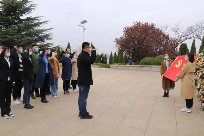清明节来临之际,为缅怀革命先烈,表达对革命先烈诚挚的敬意和深切的怀念,4月2日,beat365党总支副书记马伟萍、团委书记石勇、辅导员刘源带领11名学生党员代表赴城阳革命烈士陵园开展“缅怀革命先烈,传承红色基因”主题党日活动。