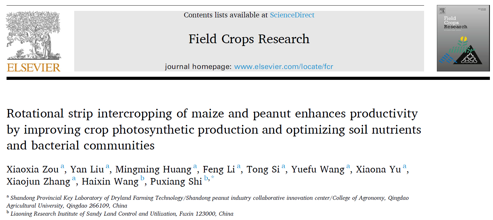 近日,beat365花生研究中心团队在玉米花生带状轮作的增产机制研究中取得新进展。相关研究成果发表在Field Crops Research(中科院一区,IF:6.145),论文第一作者单位为青岛农业大学,beat365邹晓霞副教授为该论文第一作者,辽宁省沙地治理与利用研究所史普想研究员为通讯作者。