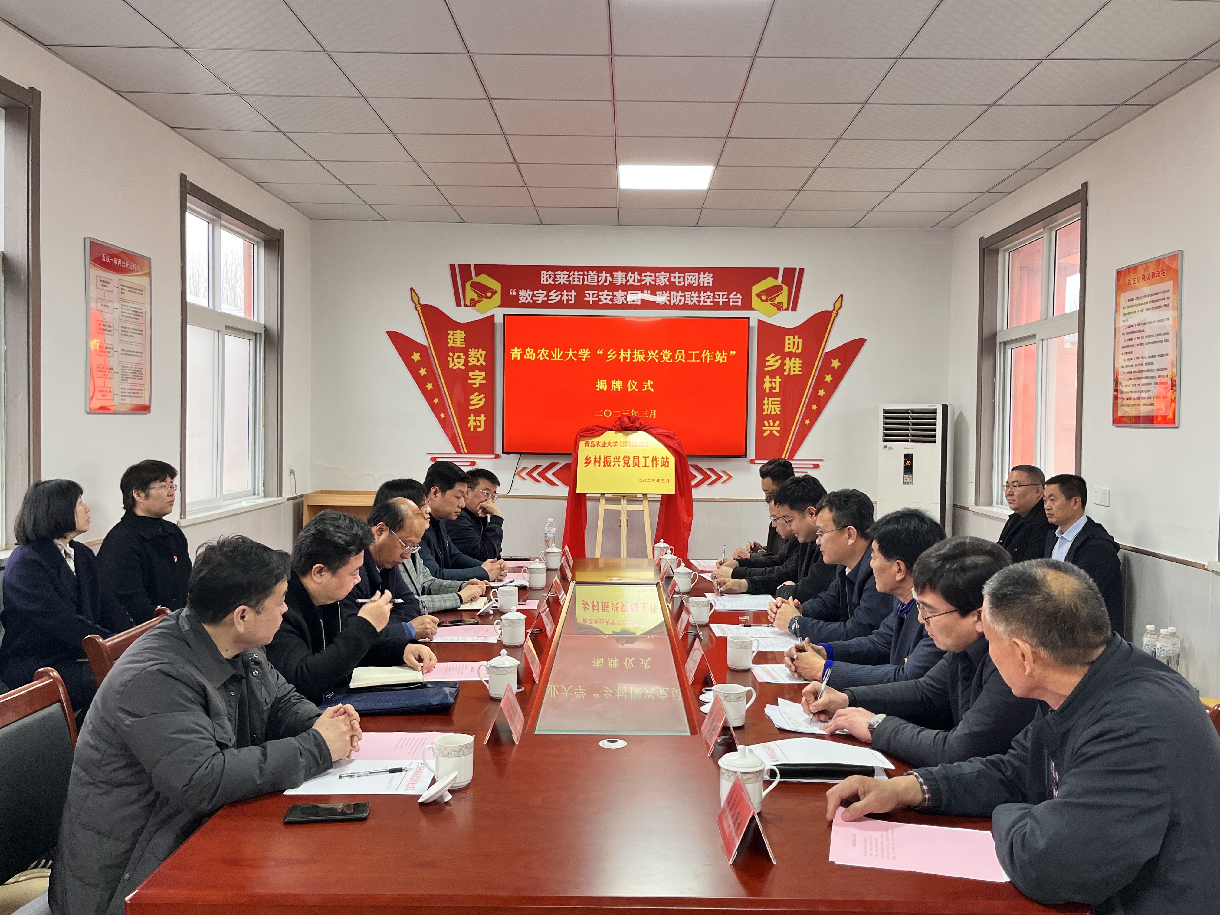 为进一步提升基层党建工作水平,实现校地党建资源共建共享,3月22日,青岛农业大学机关一财务处党支部书记、处长蒋家慧,我院党委书记马伟萍,财务处副处长孙显峰,beat365第二(教工)党支部书记张恩盈及部分师生代表一行赴胶莱街道宋家屯参加“乡村振兴党员工作站”揭牌仪式。胶州市省派驻村第一书记和工作队队长张原生、刘文星,胶莱街道党工委书记刘井哲,党工委副书记刘旭东,胶莱乡村振兴工作队队长吴焕明、刘福临等一同参加仪式。仪式由胶莱街道党工委副书记刘旭东主持。