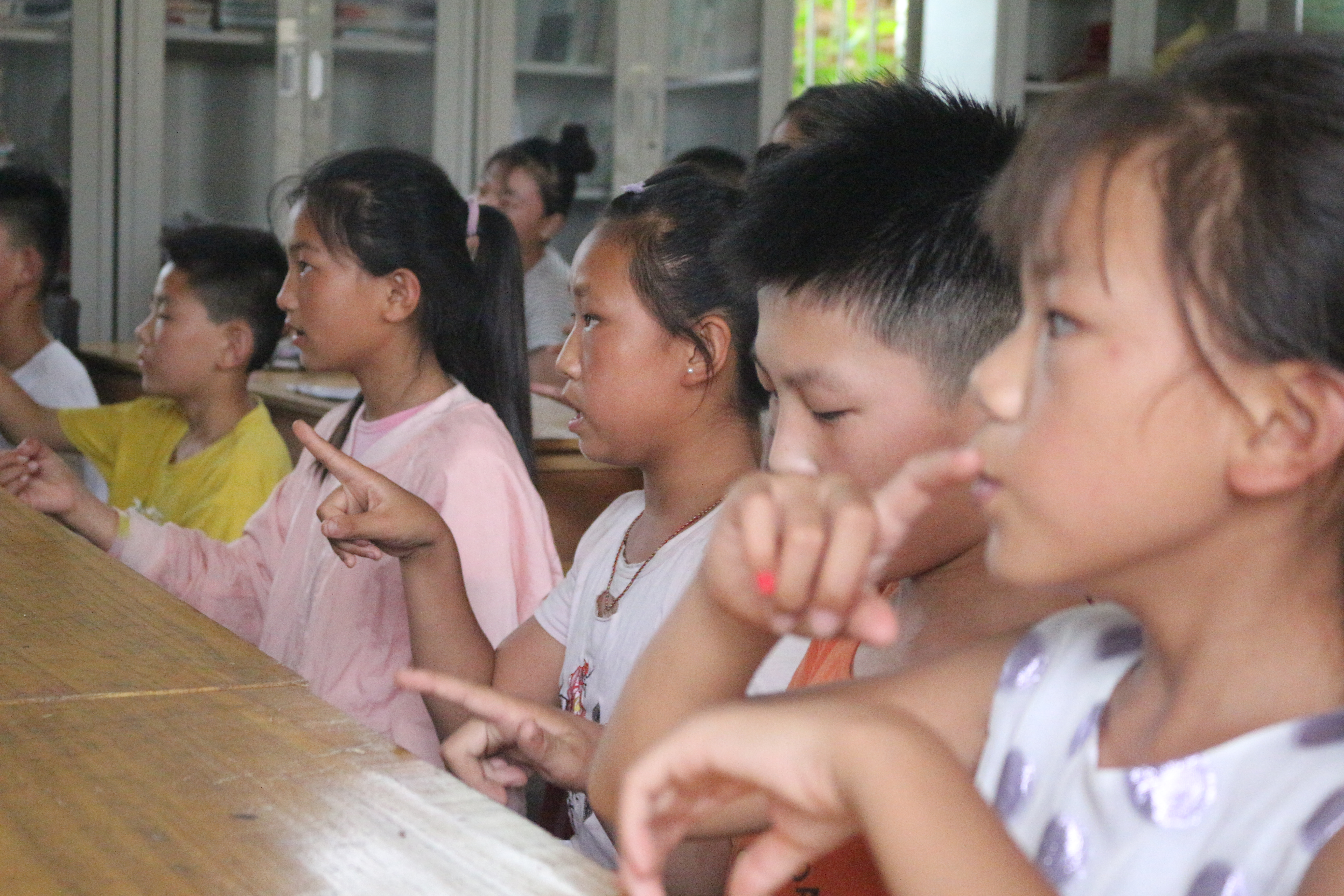 手语无声,舞动传情。手语课堂上,队员刘燕跟随音乐为孩子们表演了《追光者》手语,勾起了孩子们极大的学习兴趣,刘燕逐词把动作一一教给他们,让他们记住每个歌词所对应的手语姿势,在不断练习的过程中,课堂上充满了孩子们的欢声笑语。