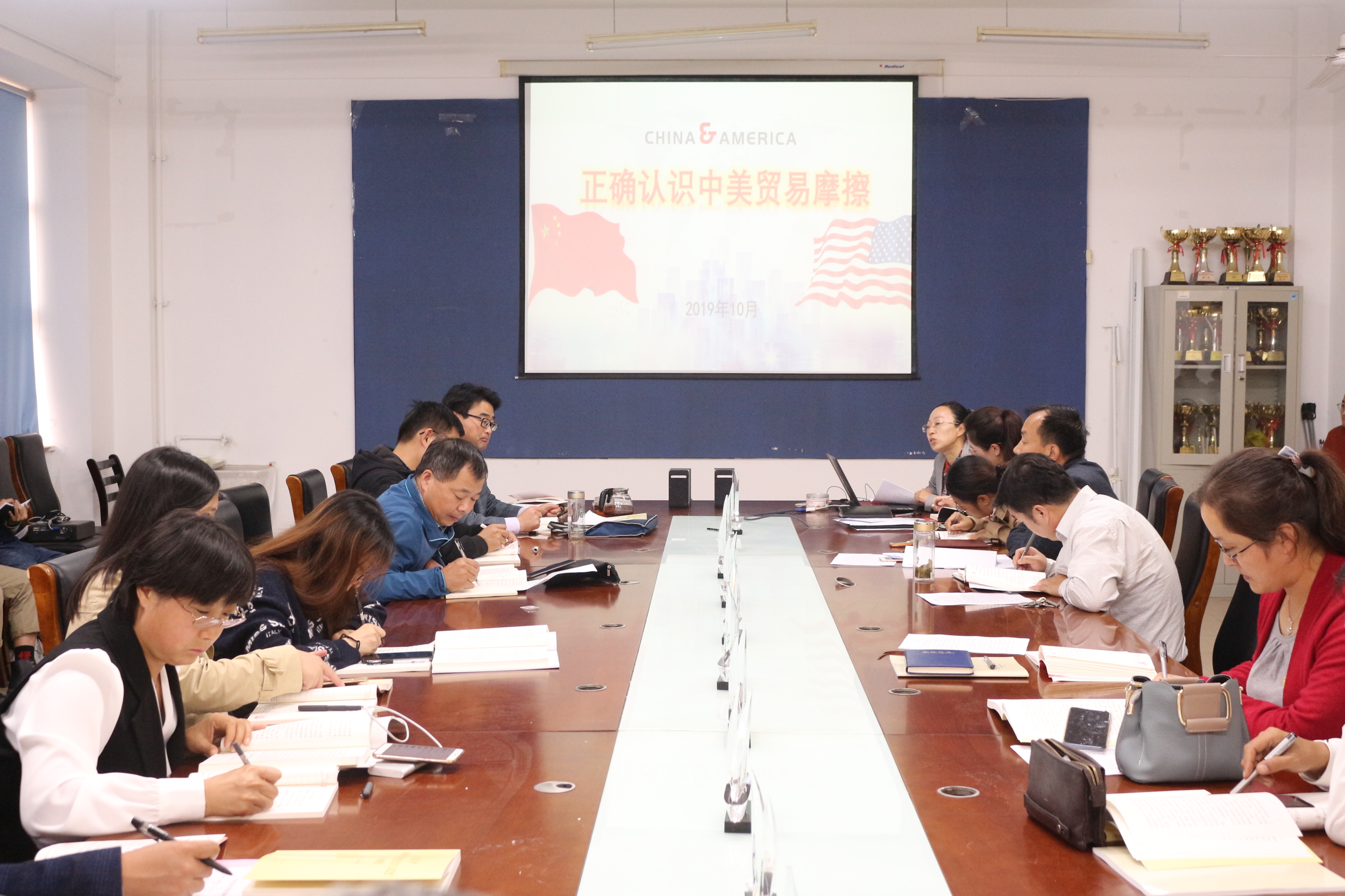 张玉梅从中美贸易摩擦的背景、中美贸易摩擦的过程和中美贸易摩擦的启示等三个方面讲了一堂深刻奋进、生动丰富的专题党课。党课伊始,张玉梅以中美近年来综合国力的发展情况、中美关系的历史渊源为背景,分析了中美关系的实质,明确了国际合作的必要性,展望了构建人类命运共同体的美好愿景。随后,她从中美贸易关系事实、中美贸易摩擦产生背景及原因等方面清晰透彻地阐述了中美贸易摩擦的实质,和师生党员一起探讨了中美贸易摩擦的启示。