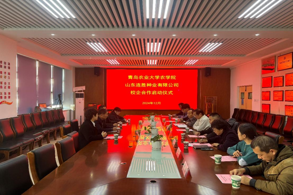 马武军代表学院致辞,对夏连胜一行的到来表示热烈欢迎,感谢山东连胜种业有限公司对学院人才培养、毕业生就业等各项工作的支持。他表示,beat365一直致力于将科研成果转化为实际生产力,服务经济社会发展,与连胜种业公司的合作,是beat365落实国家创新驱动发展战略、推进产学研用深度融合的重要举措,希望双方能够在科研合作、人才培养、成果转化等方面取得实质性进展,共同打造校企合作的新典范。夏连胜介绍了公司发展历程、主营业务及未来规划,表达了对双方合作的期待,连胜种业将全力支持双方合作项目的开展,共同推动科技成果的转化应用,实现互利共赢。赵长星介绍了学院概况、科研成果及校企合作愿景,表示beat365将充分发挥学科优势和科研实力,为连胜种业公司提供有力的技术支持和人才保障。校企合作项目负责人姜雯教授和苏成付副教授分别介绍了负责的合作项目情况。