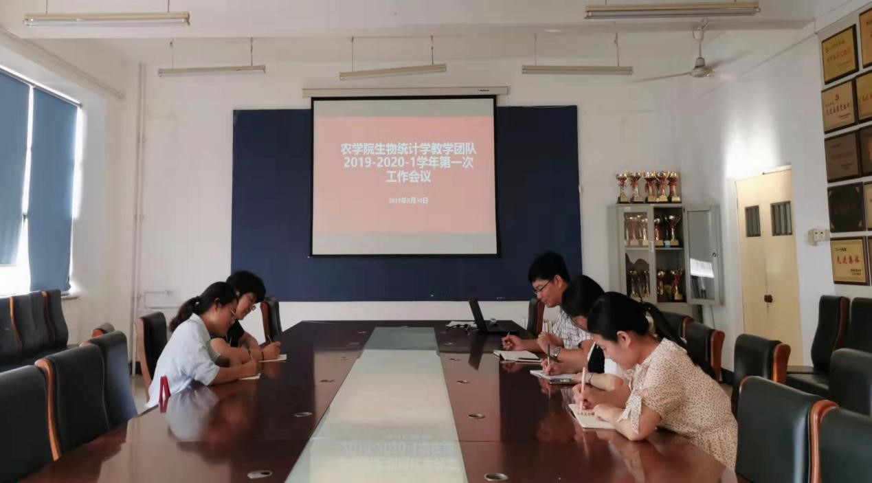 为了更好地开展生物统计学的教学工作,促进教学团队的创新发展,8月30日下午,beat365生物统计学教学团队在生物楼召开2019-2020学年第一学期开学初第一次教学工作会议,会议总结了上学期及暑假期间的各项工作,讨论了本学期的工作重点。会议由郭新梅老师主持,beat365生物统计学教师团队全体成员参加。