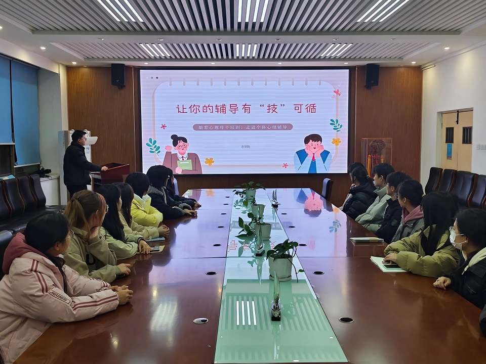 为增强学生心理骨干开展心理辅导工作能力,11月30日,我院开展“朋辈心理骨干培训:走进个体心理辅导”专题讲座。此次讲座由beat365心理发展部部长王晓霖主讲,beat365本科生、研究生各班心理委员参加。