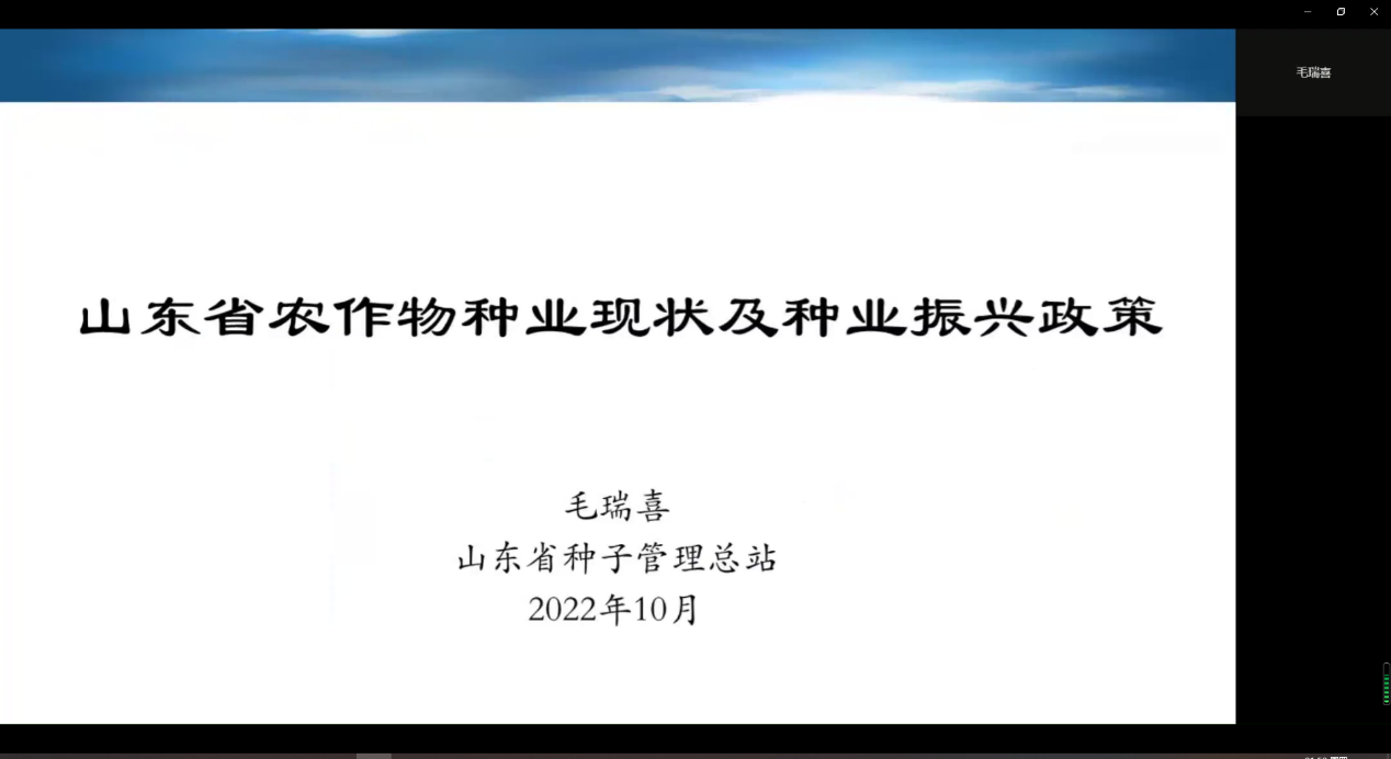 山东省种子管理总站高级农艺师毛瑞喜作题为《山东省农作物种业现状及种业振兴政策》的专题报告,从农作物种业基本情况、面临主要问题、国家种业振兴有关政策、对策措施四个方面展开报告,让同学们对我省种质现状有了全面深刻的了解和认识。